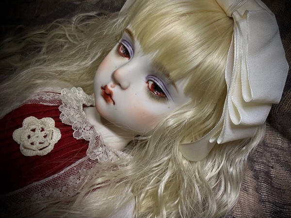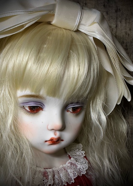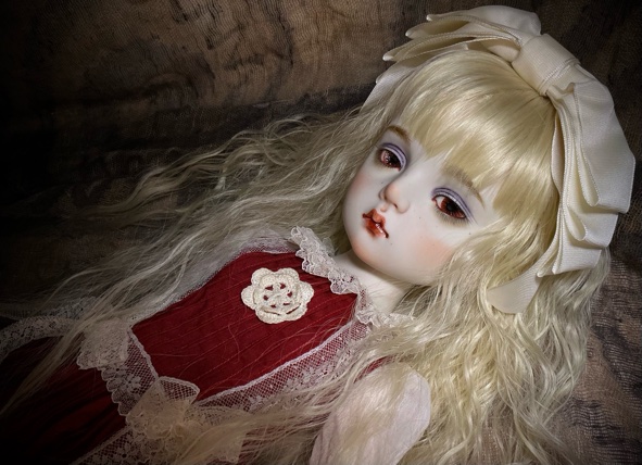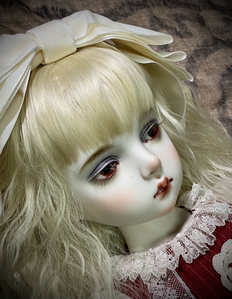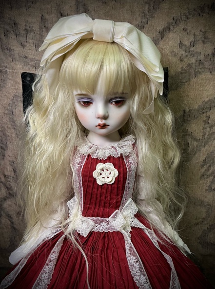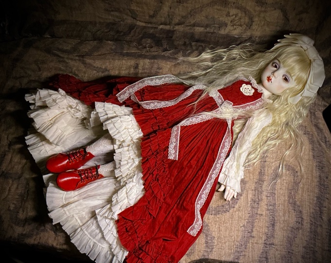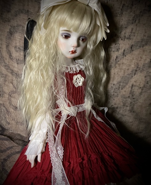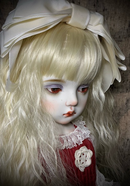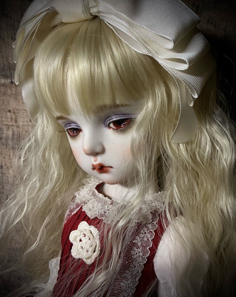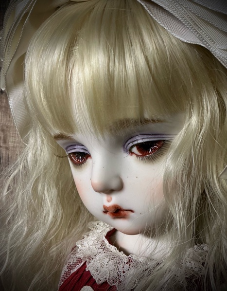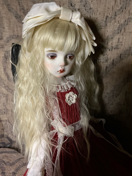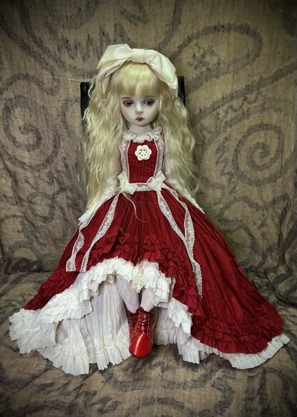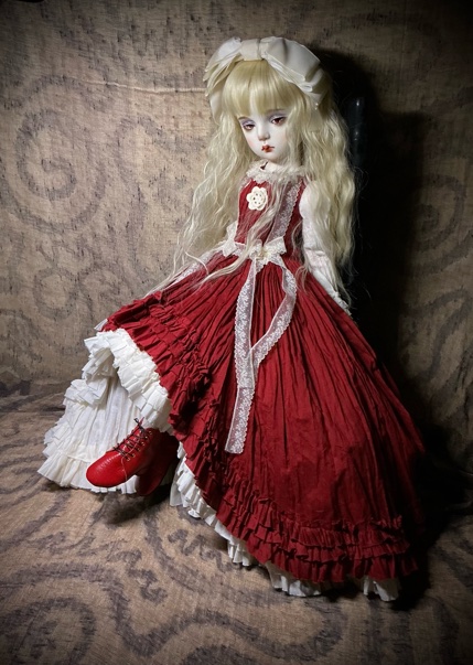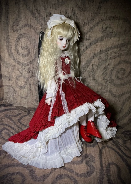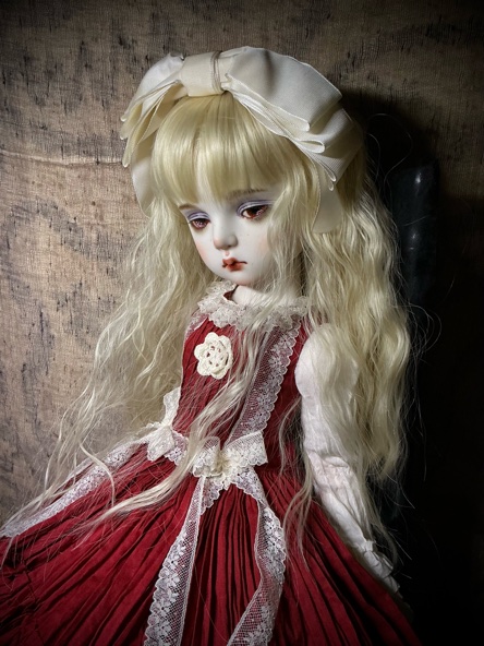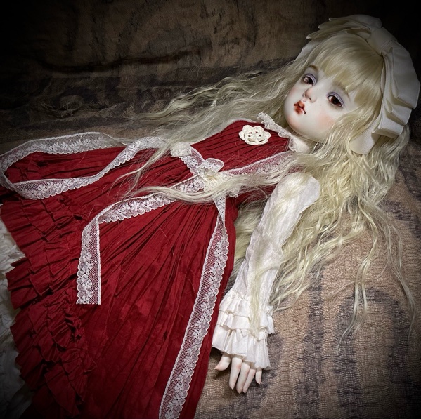 「ルージュE69」 E69(54cm)オールビスク 20パーツ薄っすらソバカスの少女ですヘア 今回のヘアはwig を着用しています頭回りの前後左右に両面テープで止めています(wig の交換が可能です)眼球(ビスクアイ) Red衣装80綿ローン ストレッチレース本革 etc