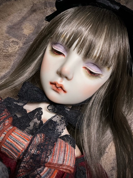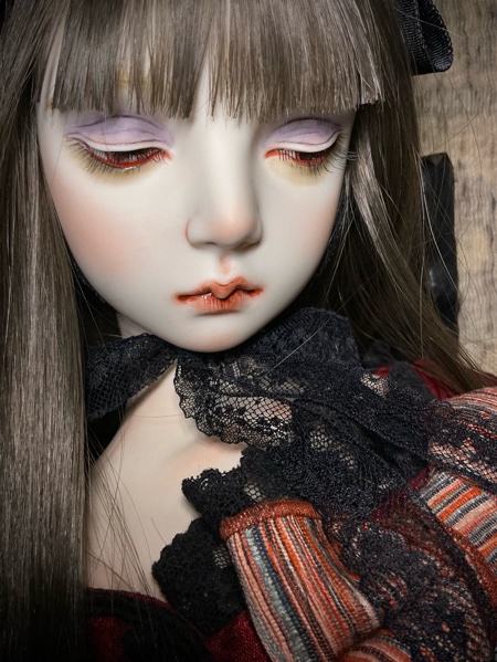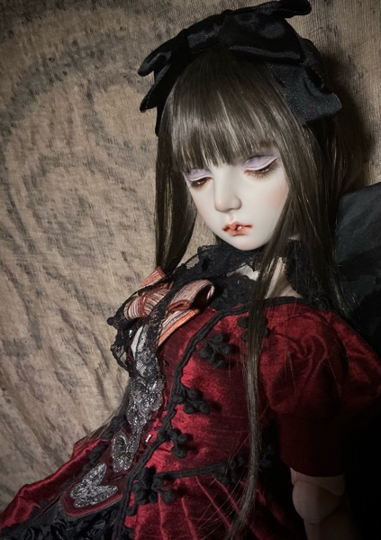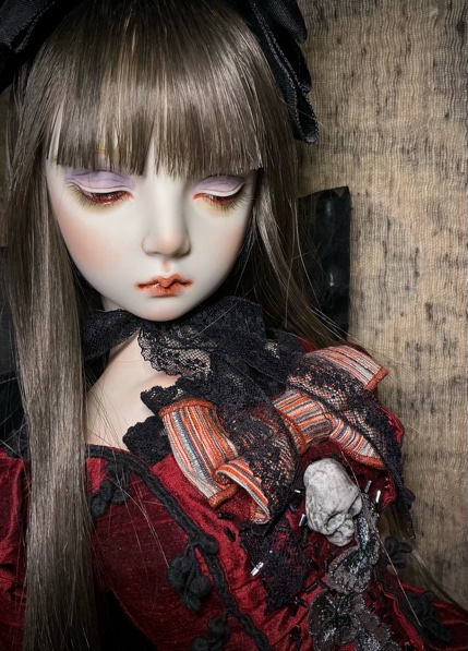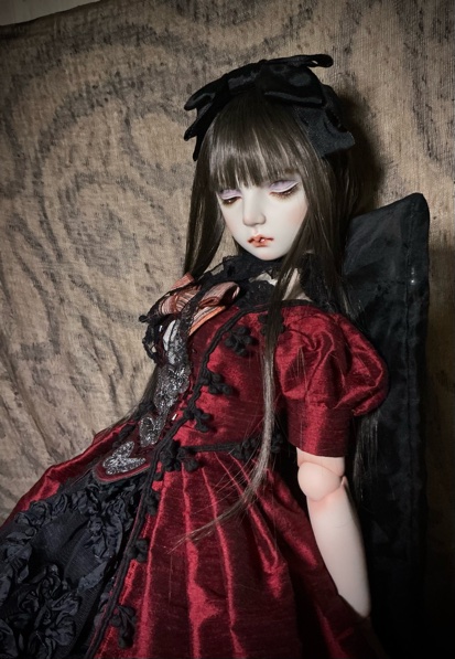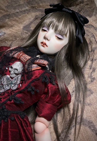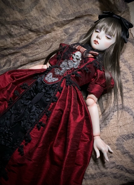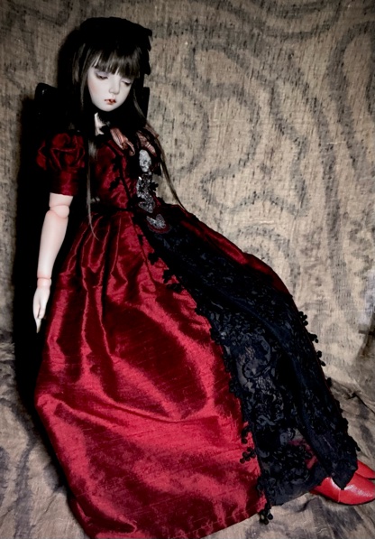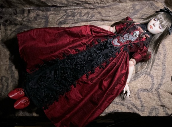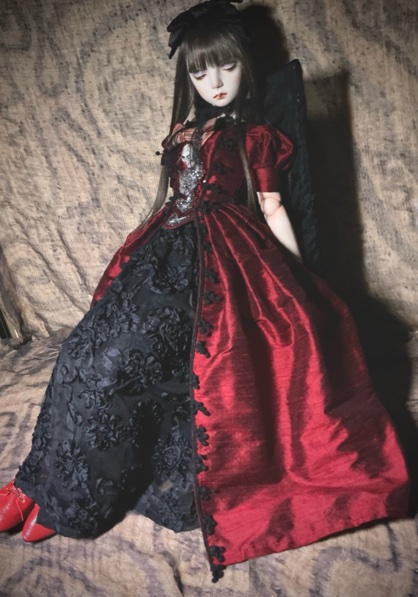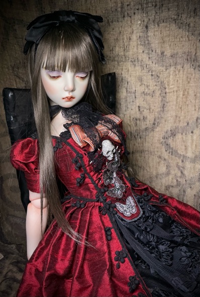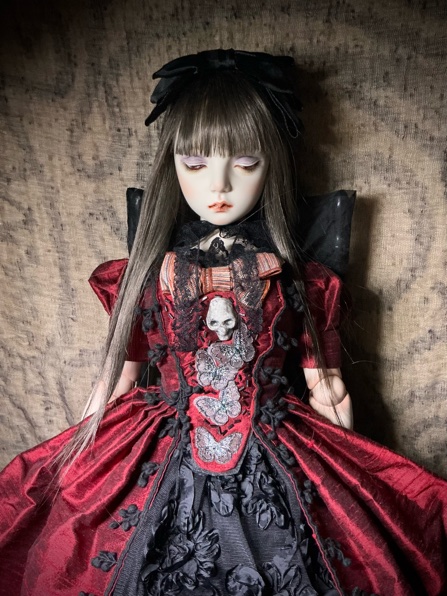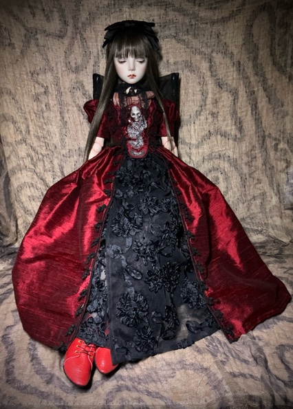 「ガーネットG18」G18(72p)オールビスク 20パーツヘア 人毛貼り付けウイッグの交換は出来ません 眼球(ビスクアイ) レッド衣装レース リボン刺繡チュール シルクシャンタン 本革 etc